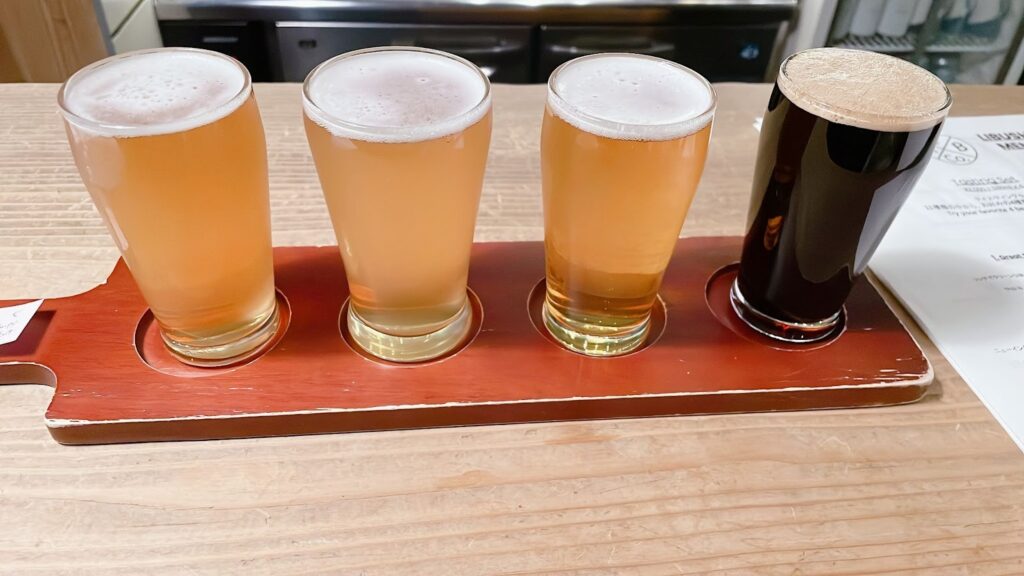 また、旅館近くにはクラフトビールの専門店があり、ビールの飲み比べをしました。